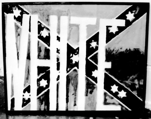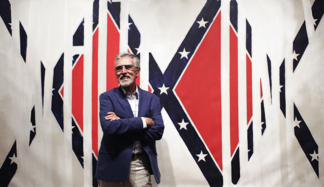 “I did a number of paintings that were meant to jam it down the throat of the racists,” he said. “The only thing I used against them was their most sacred iconic flag, which is the Confederate flag, so I chose that as my background for all of my paintings.”
